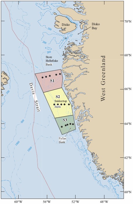 Figure 2:   Map of sampling regions and site names (Pedersen & Smidt 2000).
