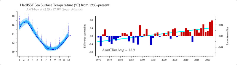 HadISST Sea Surface Temperature (C) from matching years